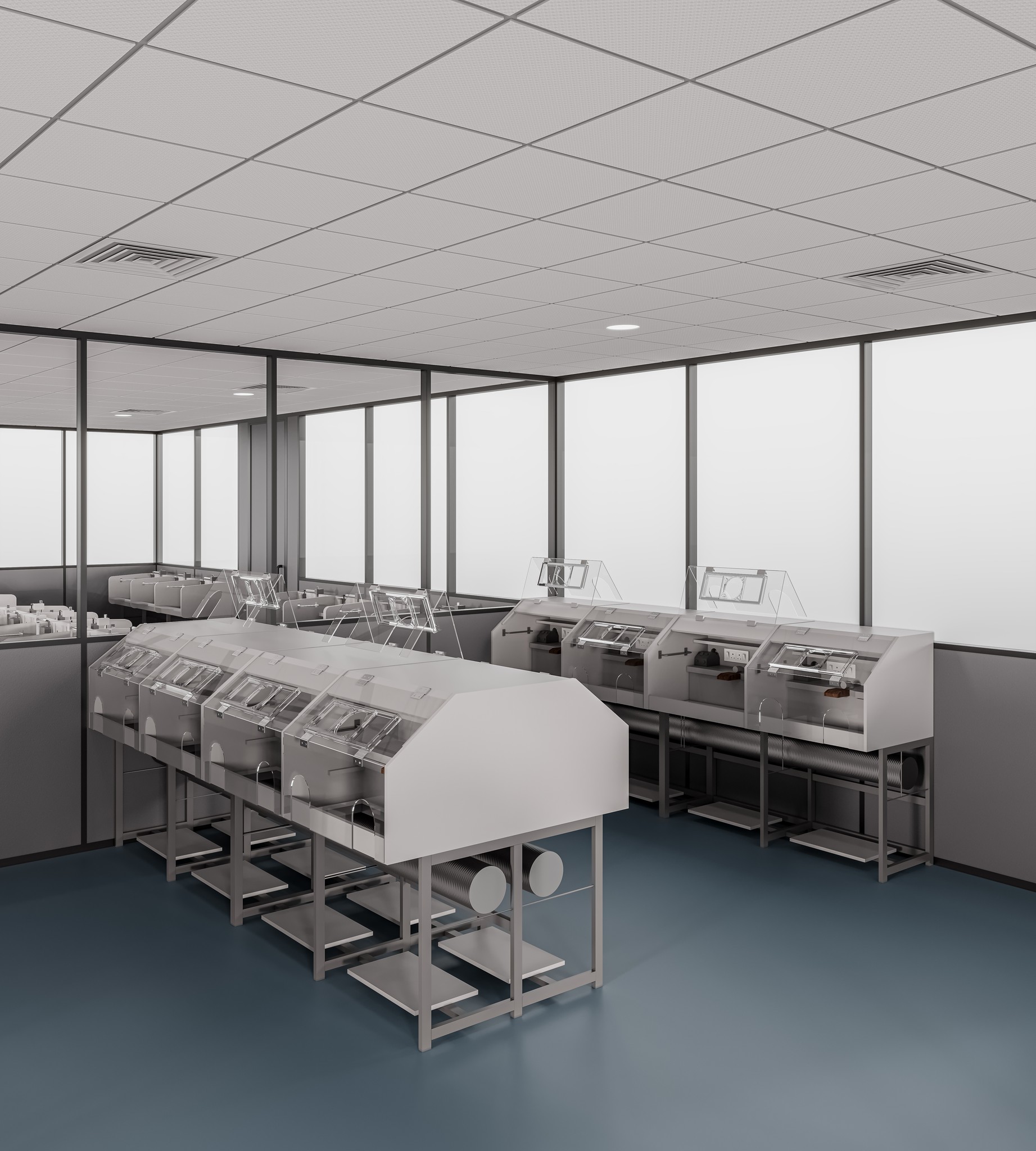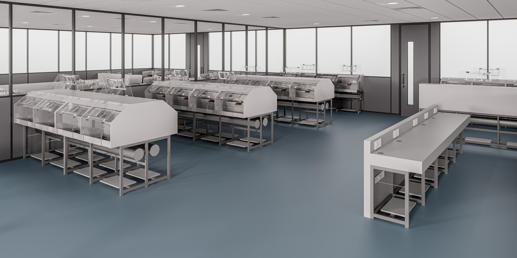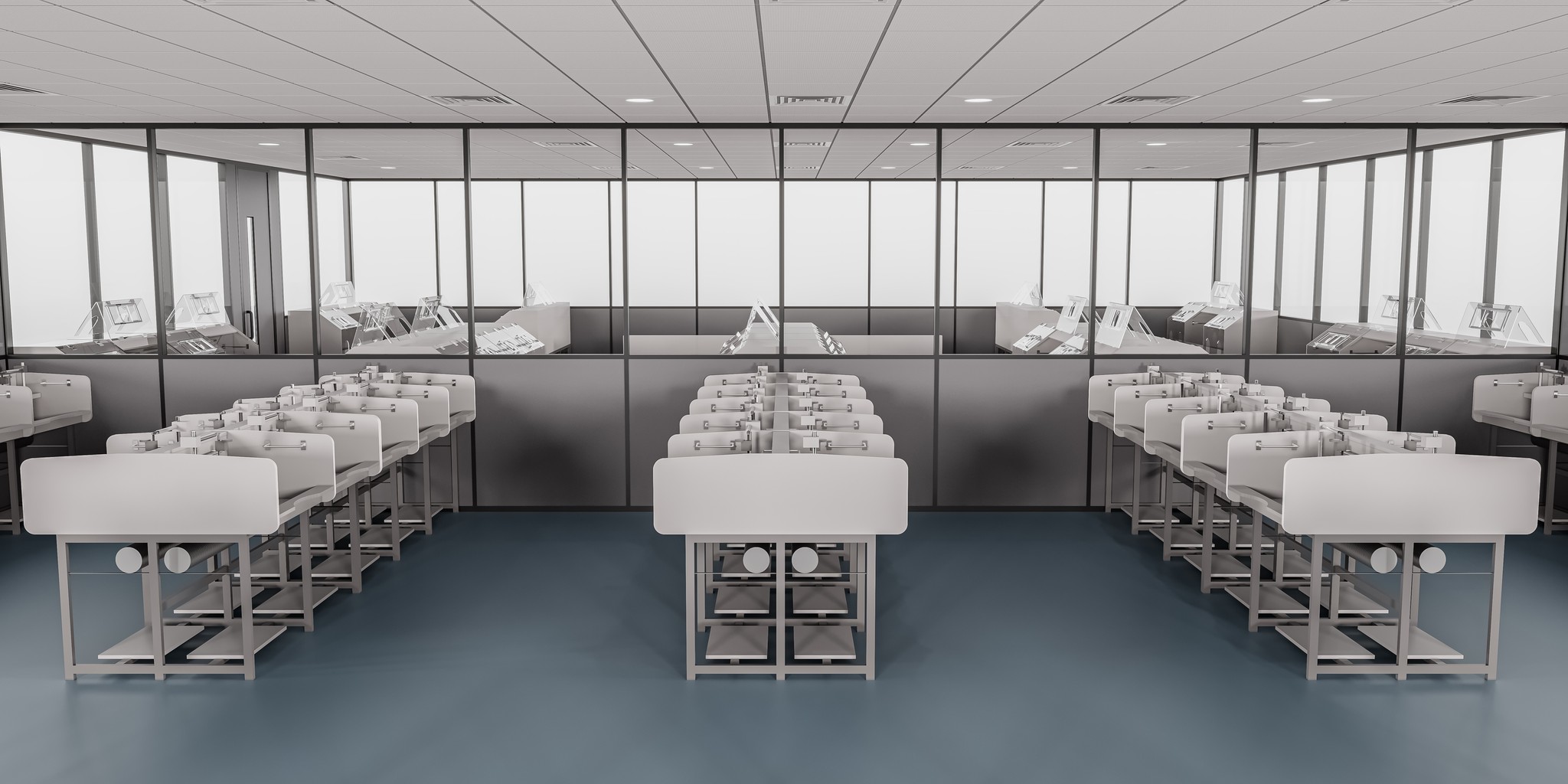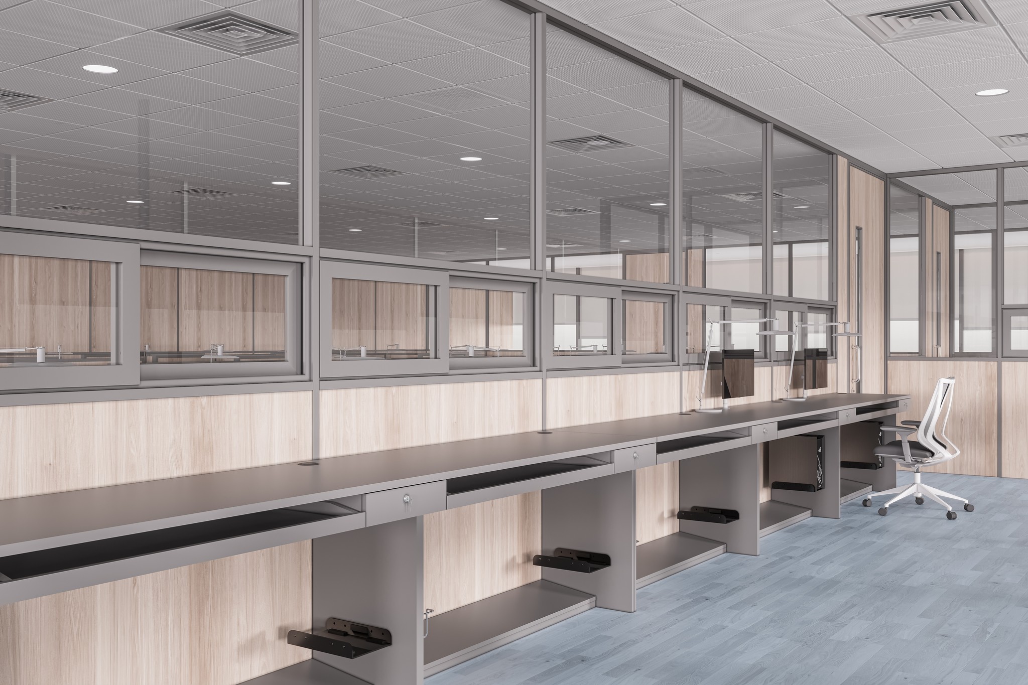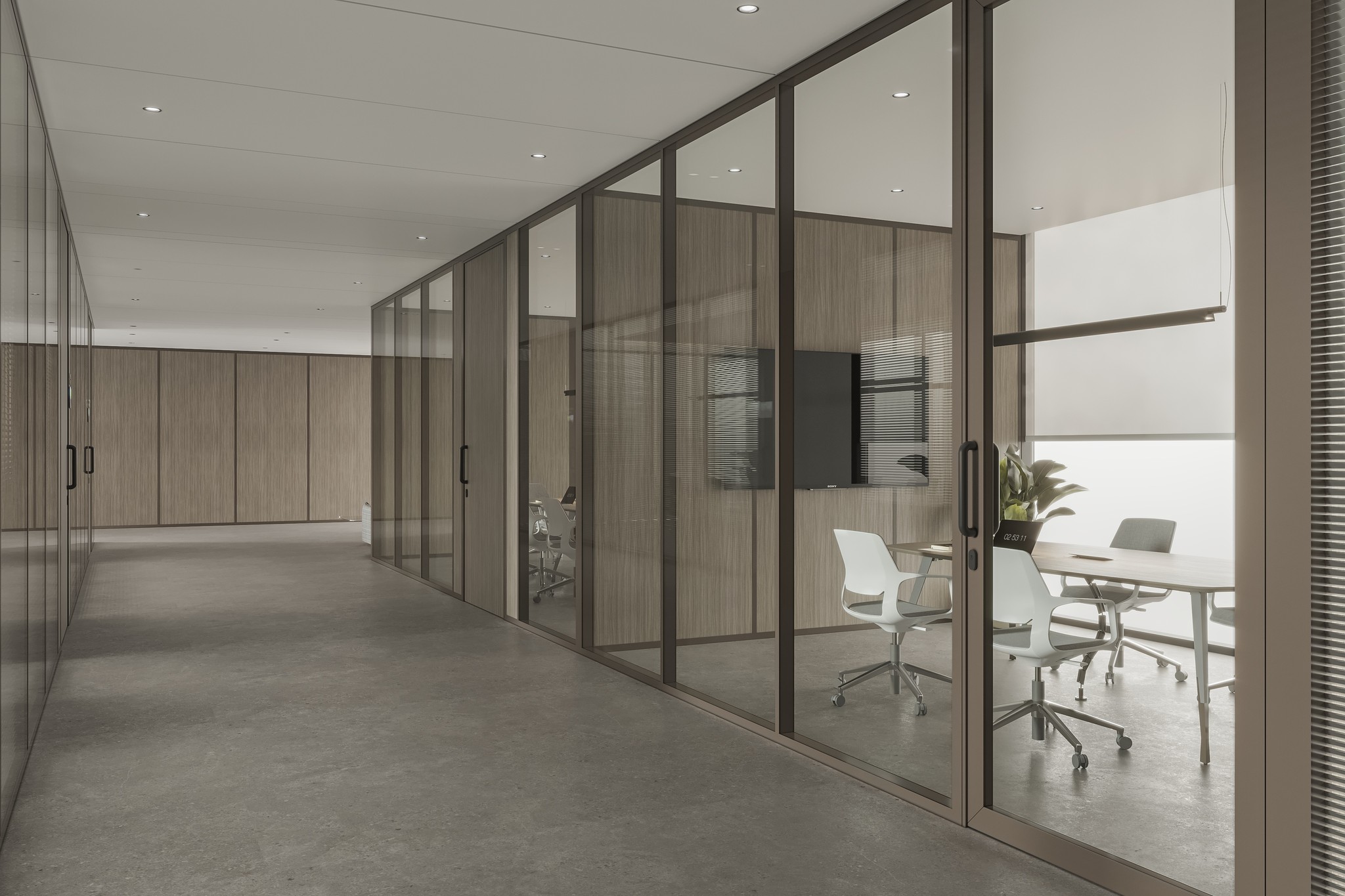 UNI 80 Series partitions ensure visual continuity across corridors, passages, and waiting areas. The system maintains a consistent design language while clearly guiding movement and spatial flow throughout the workplace.