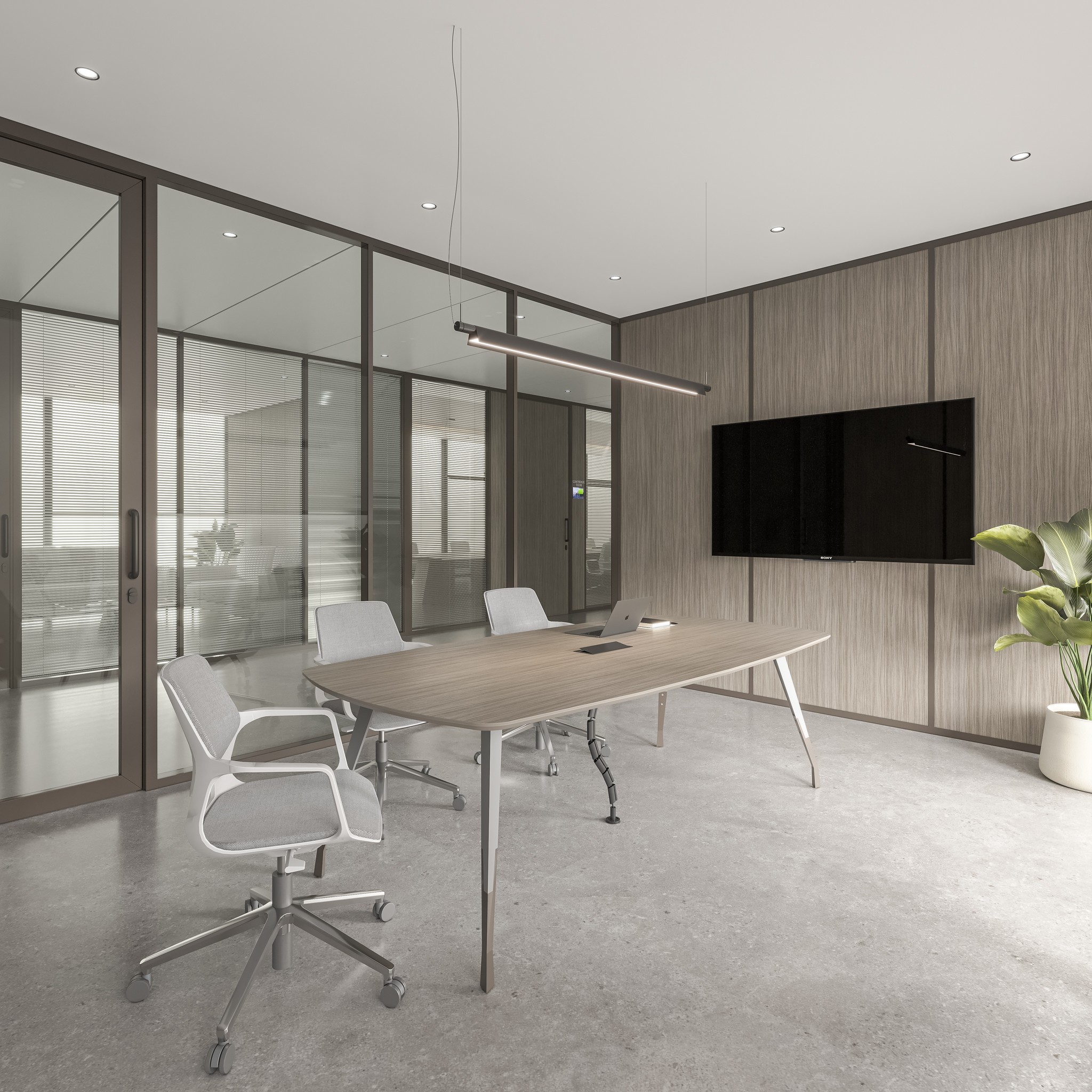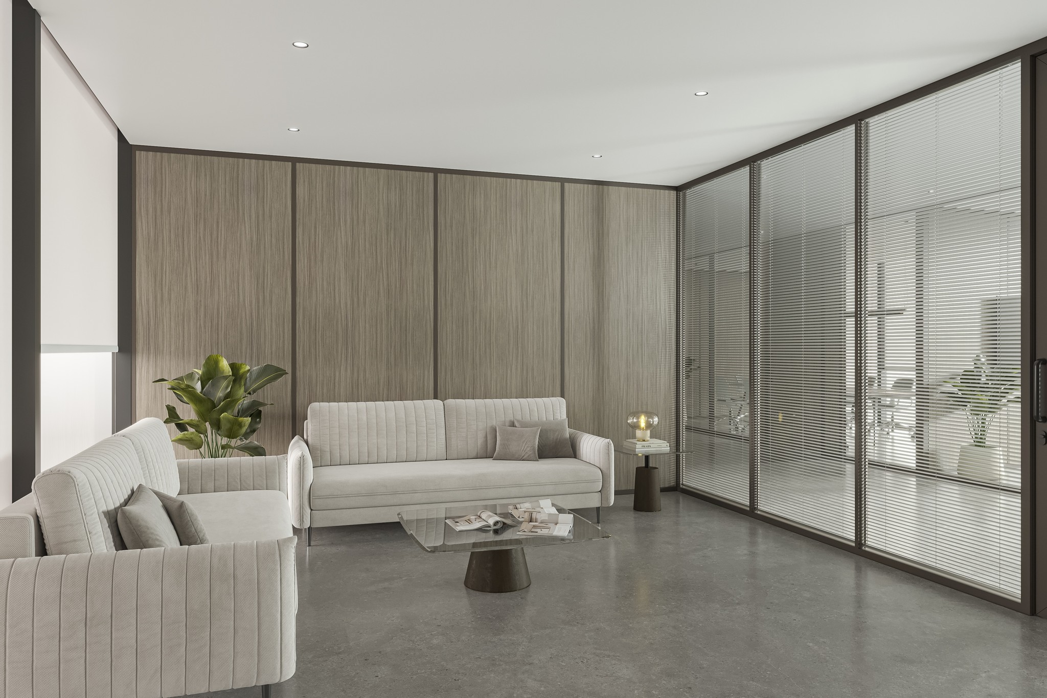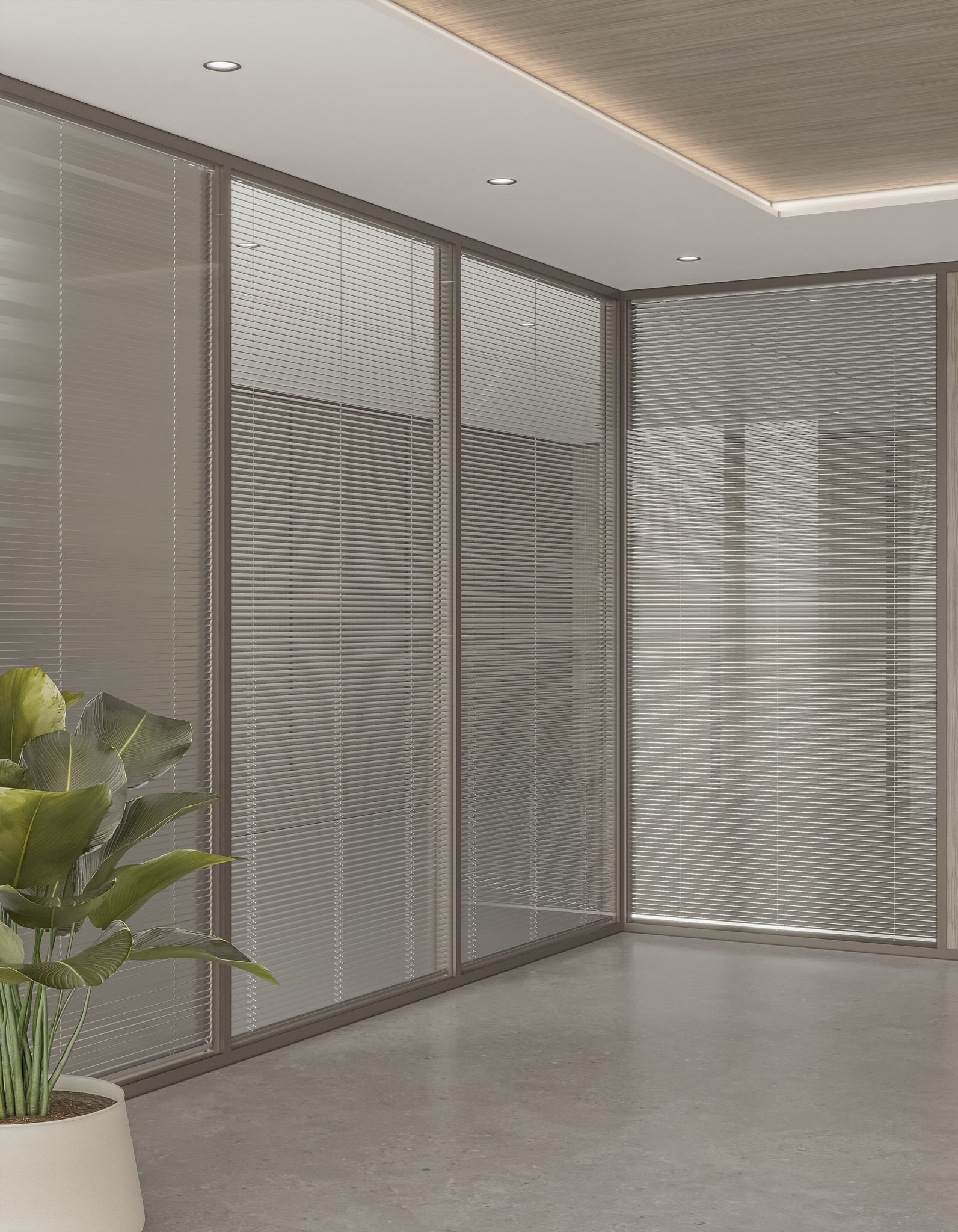 For meeting rooms, boardrooms, and discussion spaces, UNI 80 Series offers double glass configurations with superior acoustic performance. Options include clear double glazing, integrated blinds, and motorized blinds allowing instant privacy control without altering the visual language of the office.