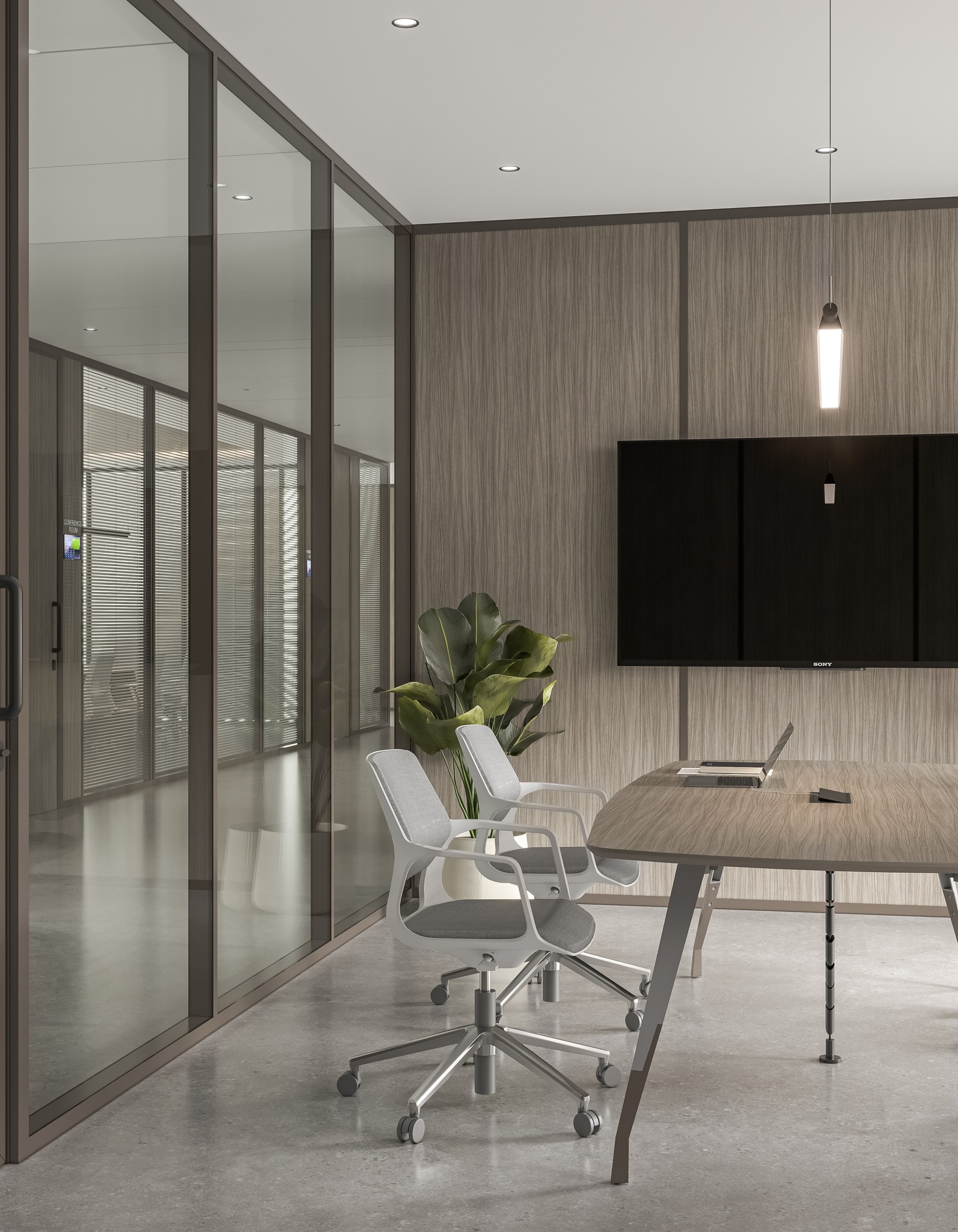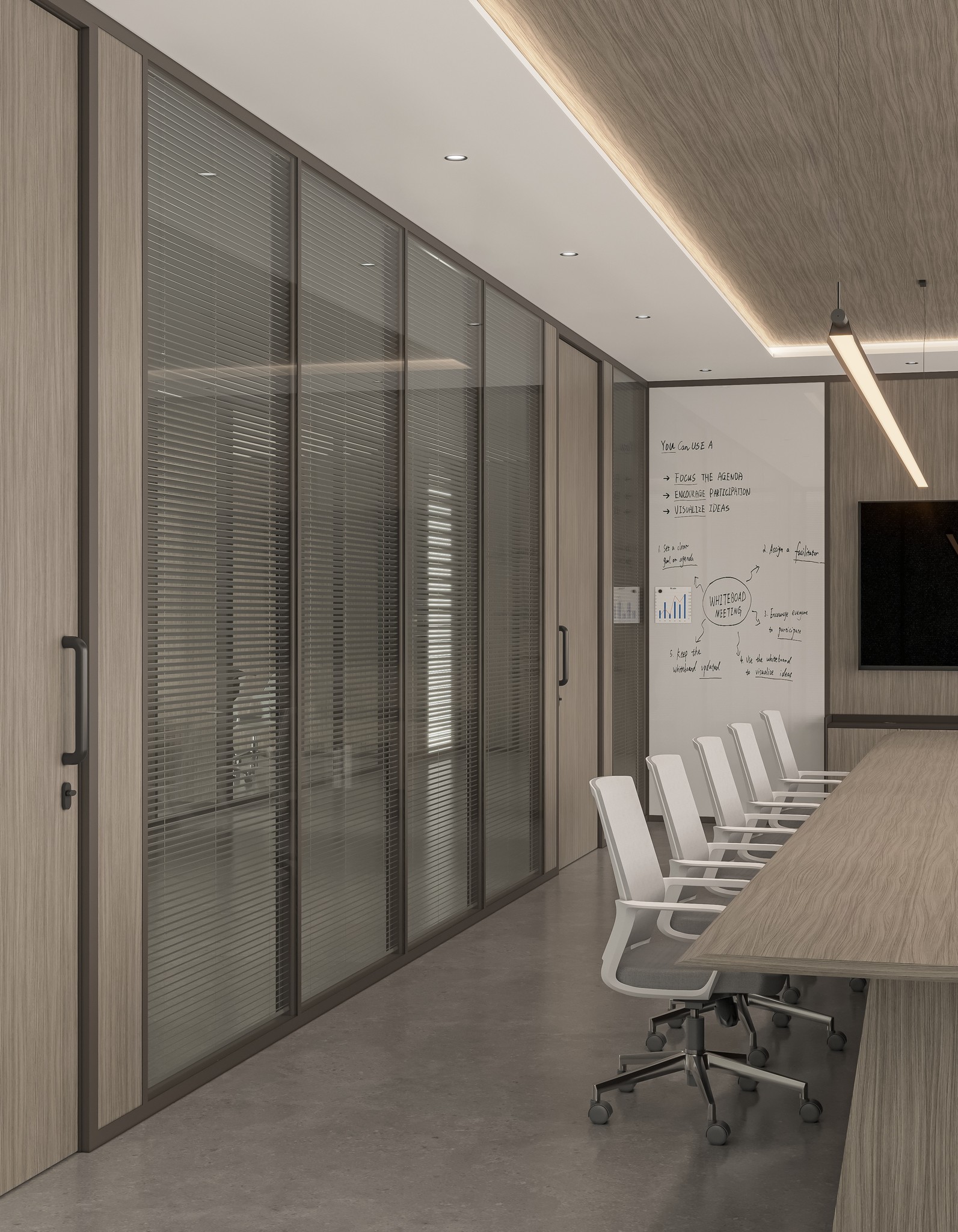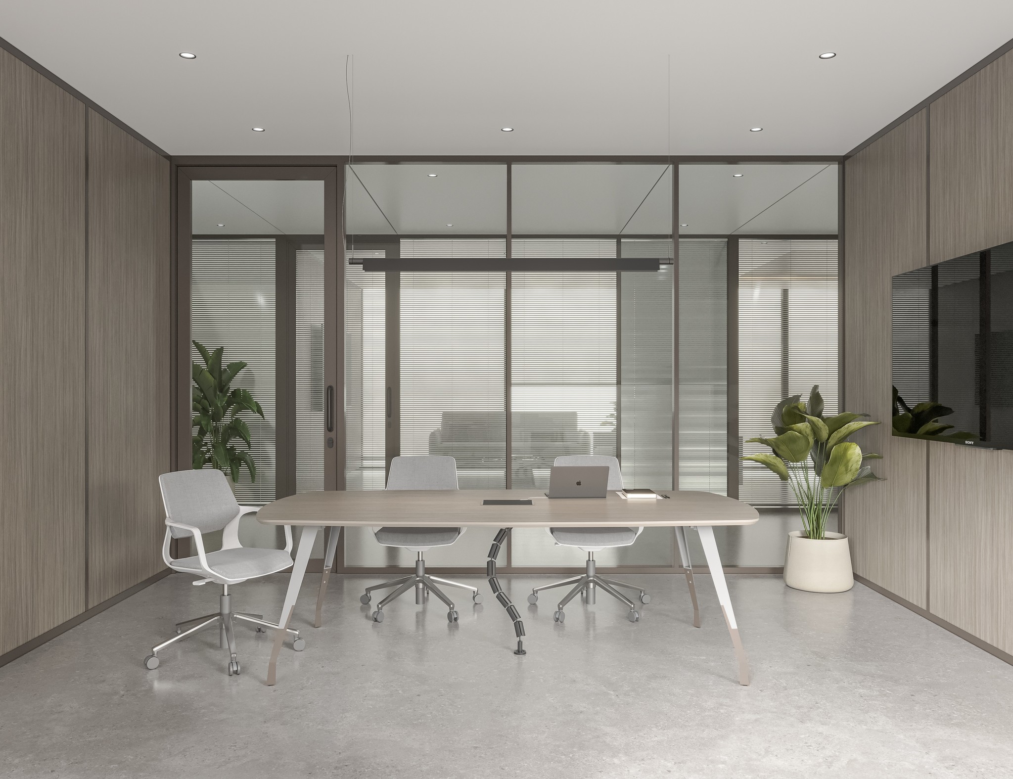 For meeting rooms, boardrooms, and discussion spaces, UNI 80 Series offers double glass configurations with superior acoustic performance. Options include clear double glazing, integrated blinds, and motorized blinds allowing instant privacy control without altering the visual language of the office.