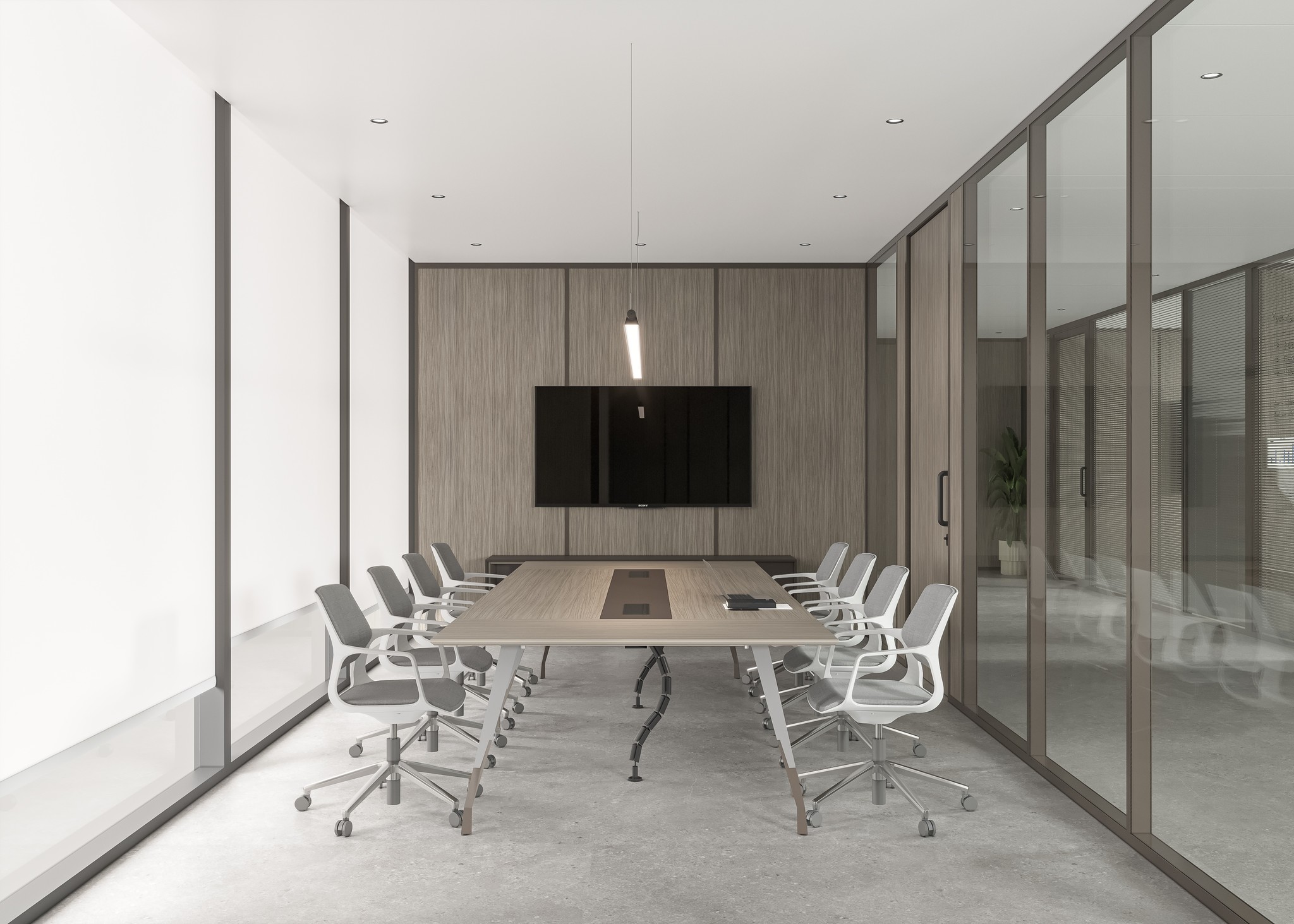 Designed for focused collaboration, UNI 80 Series meeting spaces balance transparency and privacy. The system integrates effortlessly with conference furniture, AV setups, and lighting while maintaining clean lines and architectural consistency.
