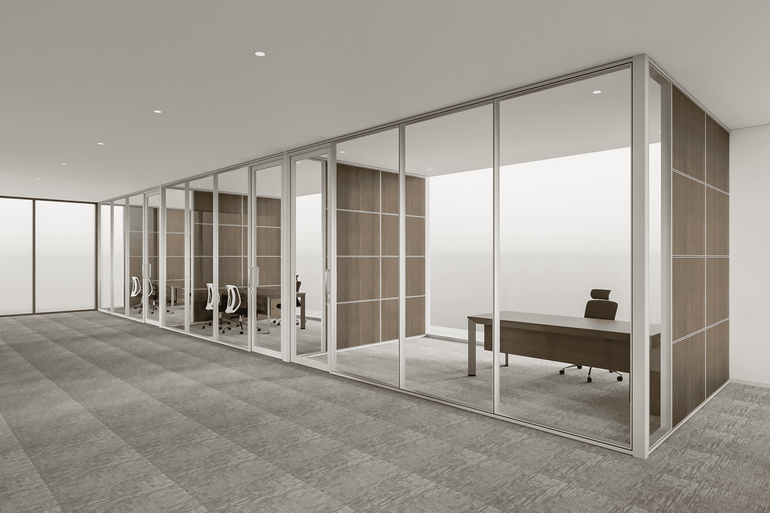UNI 85 Series is a high-performance partition system developed for large-format enclosures and heavy-duty office environments. With an enhanced profile design and increased structural depth, the system enables wider glass spans, improved rigidity, and flexible glass placement options - making it ideal for executive areas, large boardrooms, and premium office interiors.